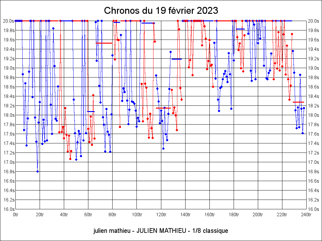 2023 Meilleure série sur 5 min 17 5:54.222 19-02-2023 13:48:23 13.13°C 16.53°C 4.76km 48.38km/h
