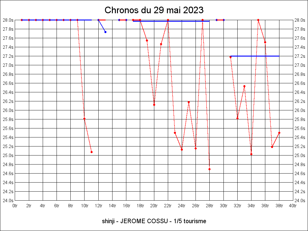 Meilleur tour - 22.516 17-05-2025 18:13:46 30.19°C 36.69°C 0.28km 44.77km/h