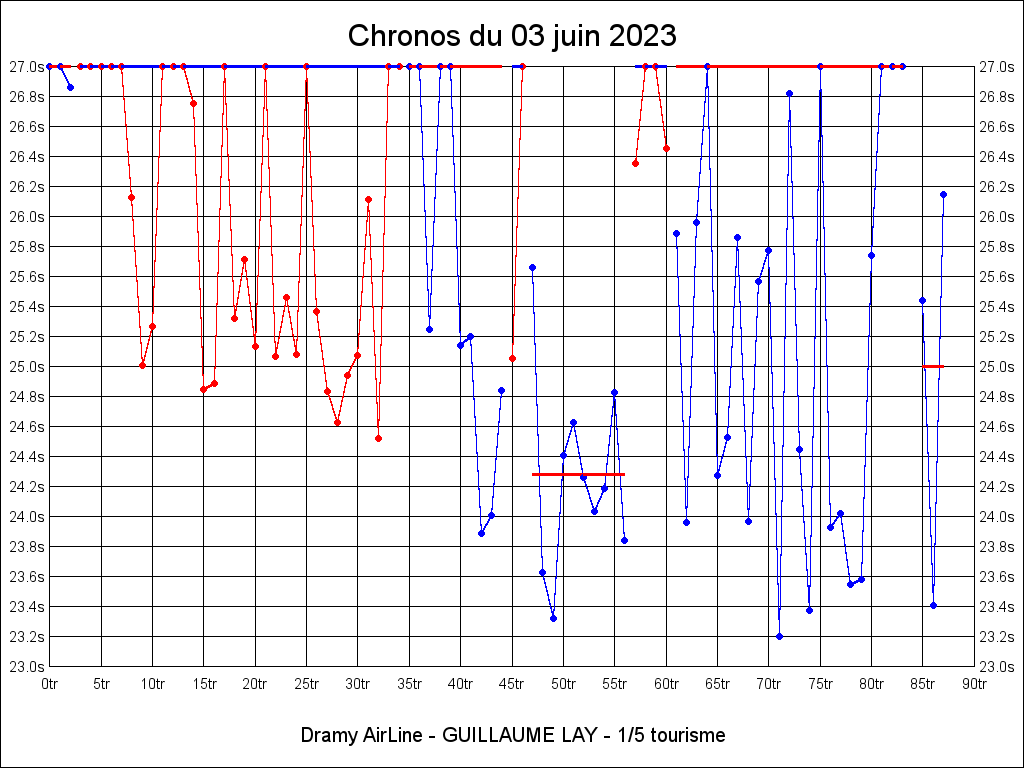 | 26.150 | 22:36:50 | 3 | 1:14.997 | 3 | 1:14.997 |