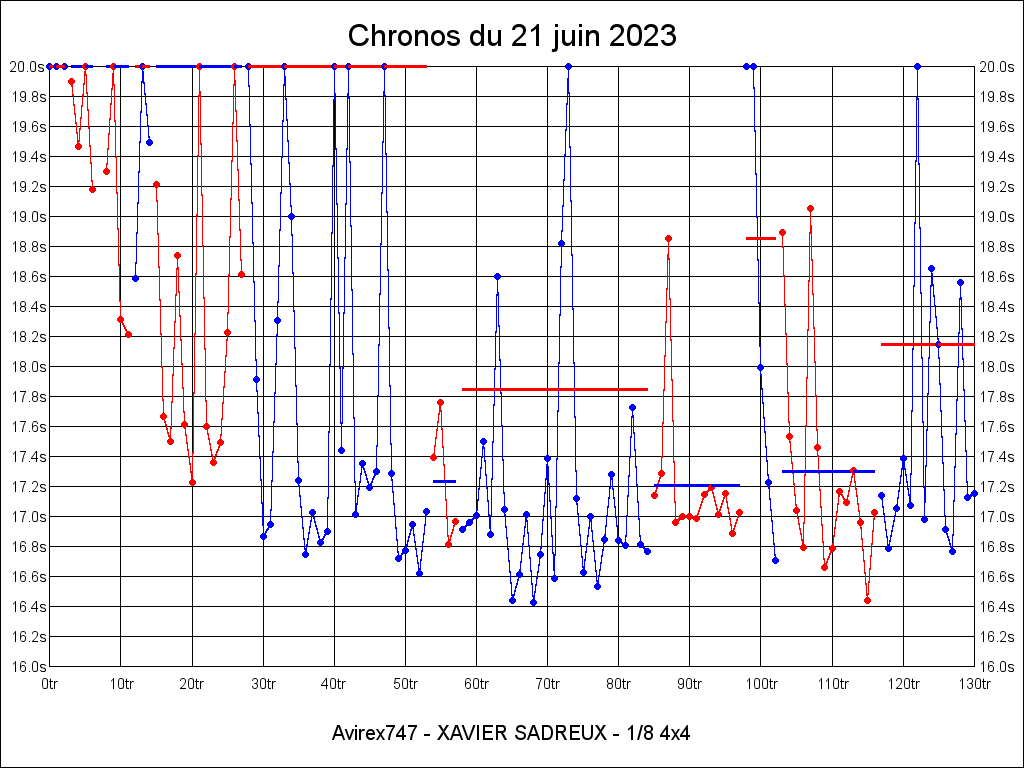 | 16.660 | 19:30:33 | 7 | 2:03.437 | 7 | 2:03.437 |