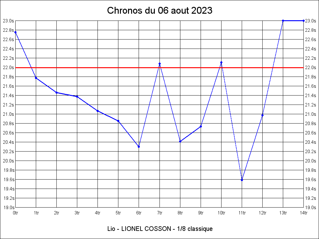 | 22.079 | 15:10:23 | 8 | 2:51.665 | 8 | 2:51.665 |