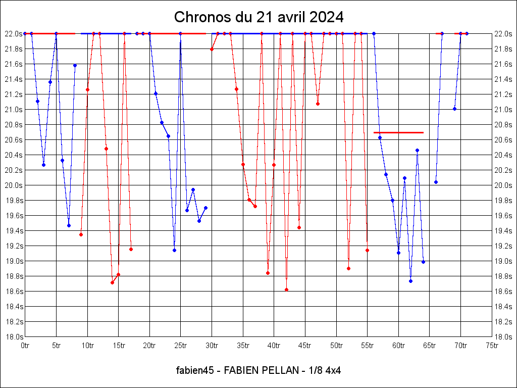 | 21.075 | 16:22:53 | 18 | 8:04.124 | 12 | 5:14.498 |