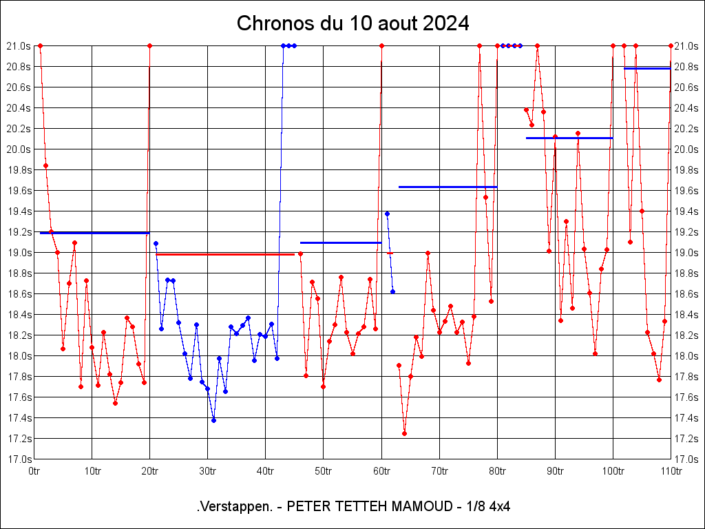 | 17.249 | 18:10:42 | 2 | 0:35.159 | 2 | 0:35.159 |