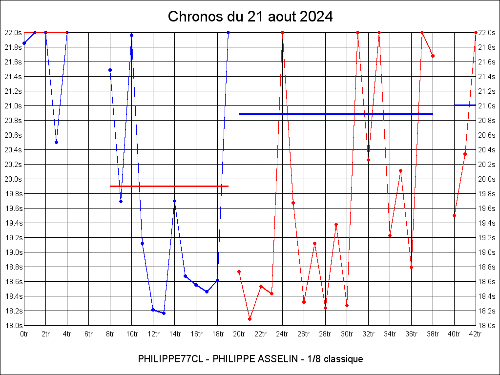 | 21.678 | 17:52:13 | 19 | 6:36.894 | 14 | 4:42.983 |