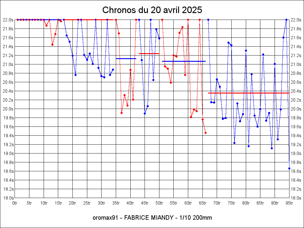 | 21.222 | 17:13:15 | 20 | 6:48.938 | 15 | 5:03.363 |