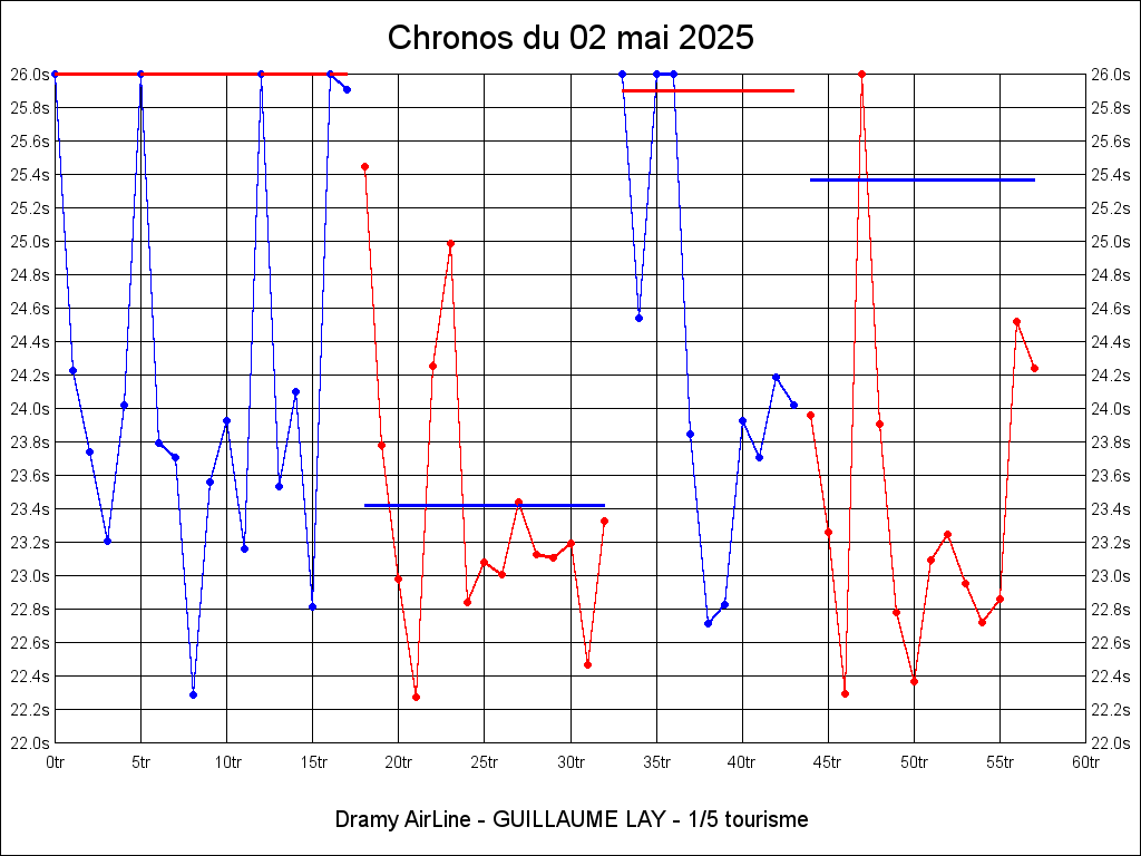 Meilleur tour - 22.274 02-05-2025 15:06:12 29.83°C 42.51°C 0.28km 45.25km/h