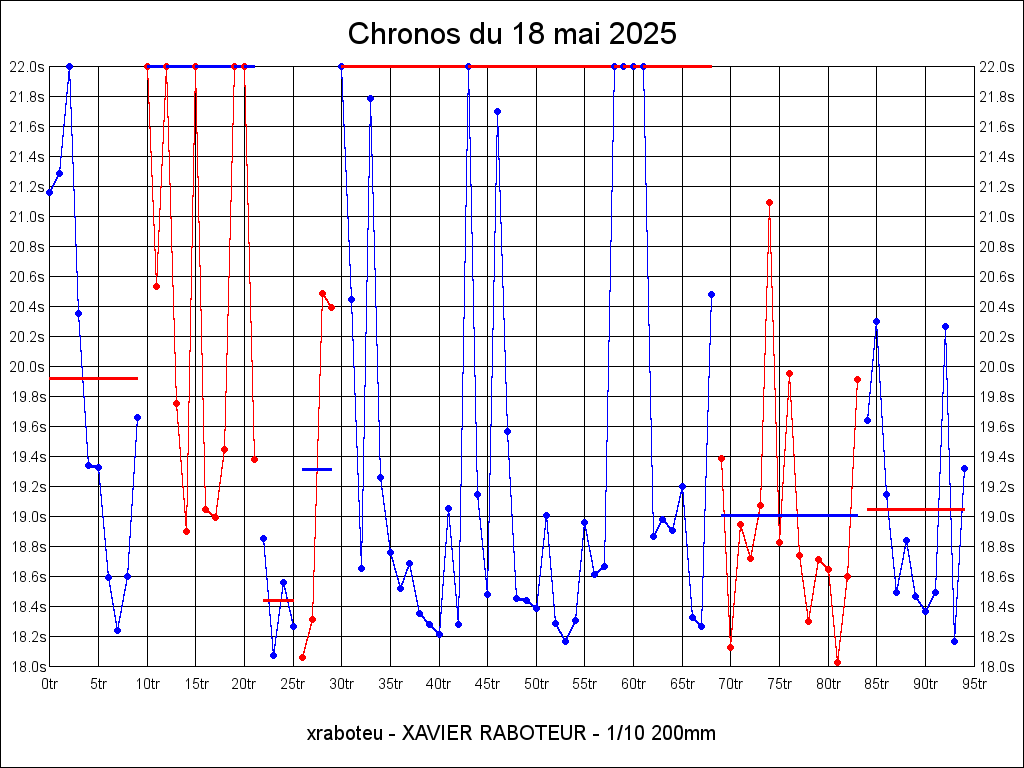 | 18.388 | 18:59:22 | 21 | 7:23.750 | 15 | 5:09.277 |