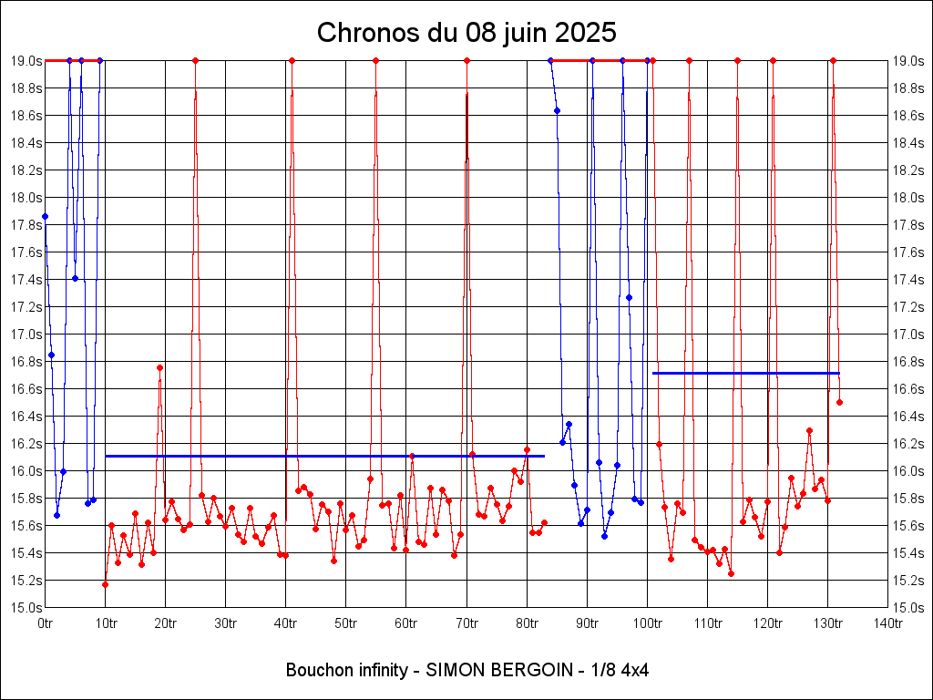 | 15.780 | 16:05:17 | 30 | 8:13.760 | 19 | 5:13.890 |