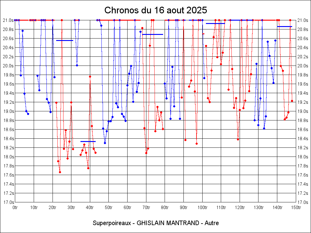 Meilleur tour - 17.658 16-08-2025 11:39:52 22.83°C 25.35°C 0.28km 57.08km/h