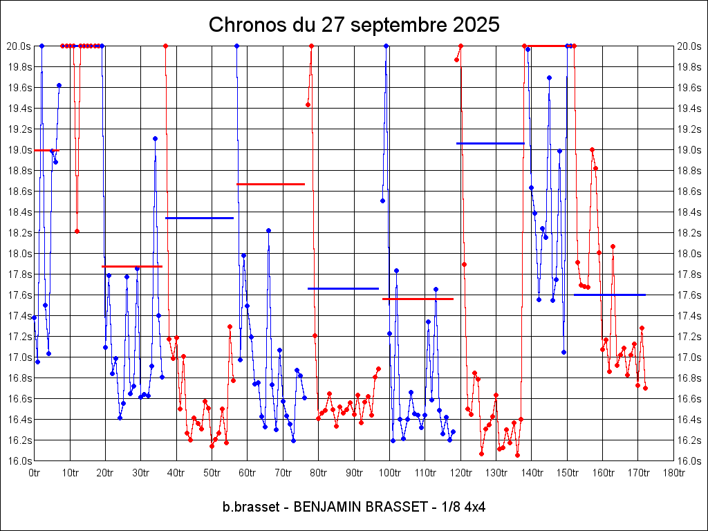| 17.280 | 19:50:34 | 20 | 5:52.967 | 18 | 5:14.065 |