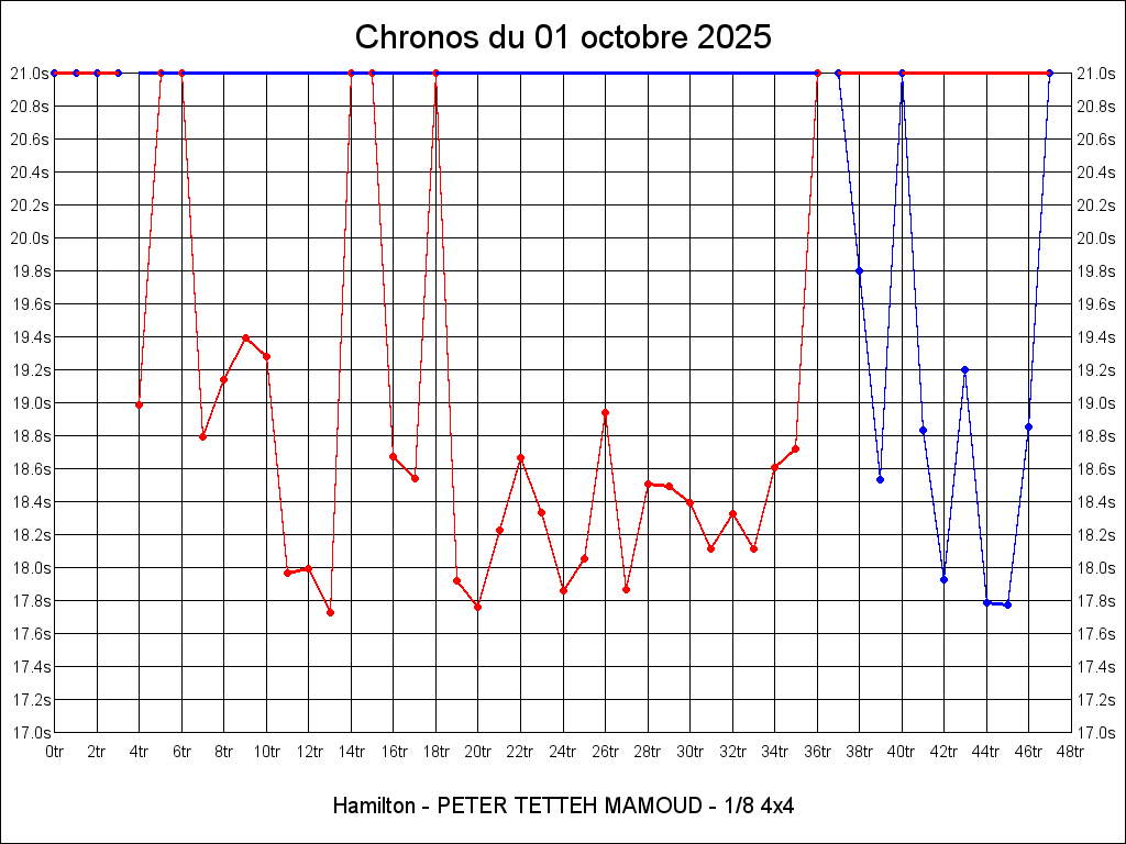 | 17.860 | 18:40:17 | 21 | 7:56.813 | 12 | 5:01.320 |