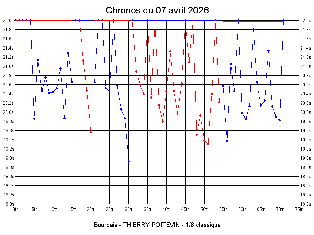 Meilleur tour - 18.922 07-04-2026 15:39:13 26.81°C 33.93°C 0.28km 53.27km/h