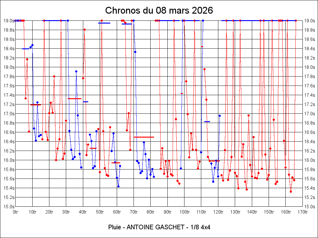 2026 Meilleure série sur 5 min 17 5:07.061 08-03-2026 17:27:42 25.07°C 22.43°C 4.76km 55.81km/h