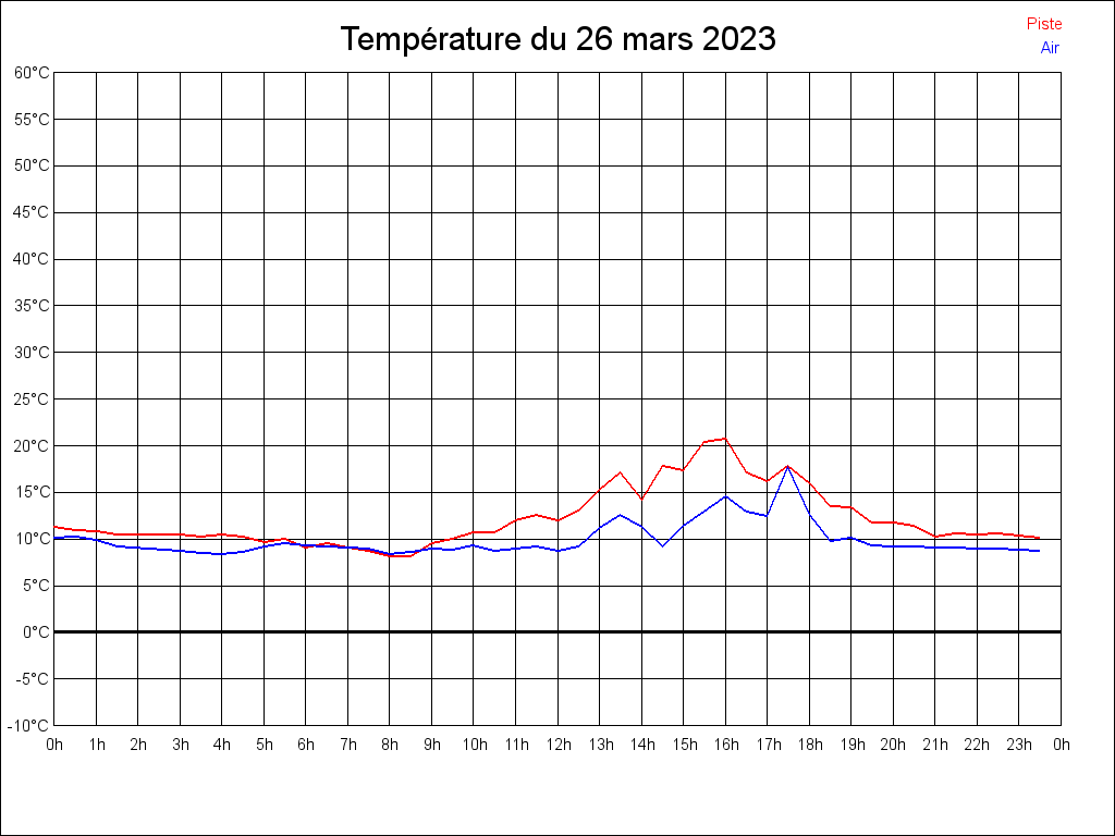 Le 26/03/2023 à 16:36:29, il faisait 12.95°C dans l'air et 17.21°C au sol.