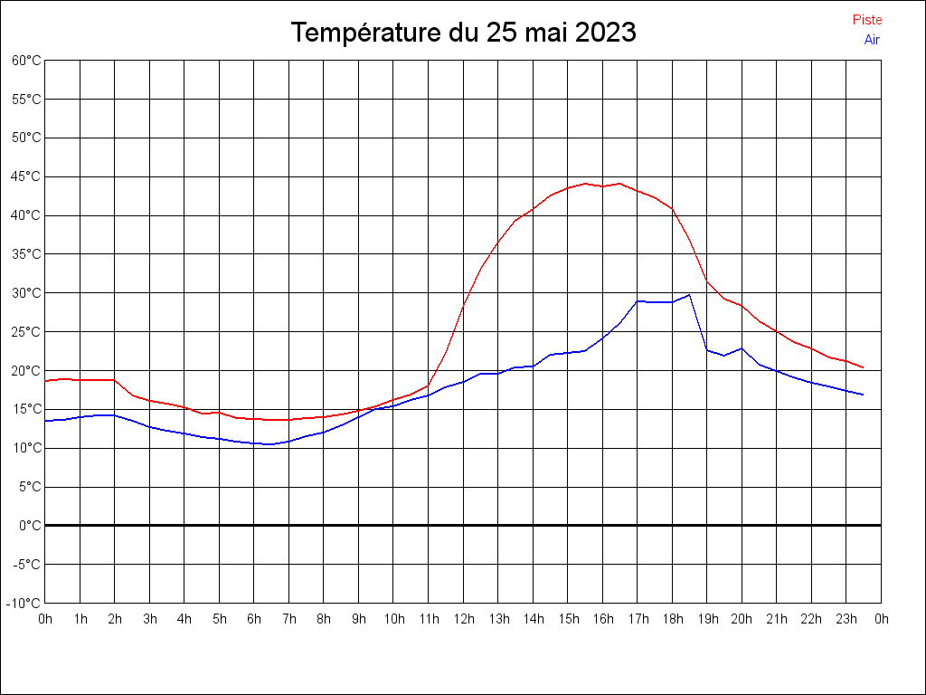 Le 25/05/2023 à 18:52:39, il faisait 22.65°C dans l'air et 31.57°C au sol.