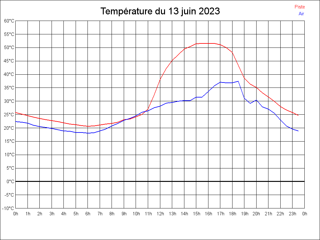 Le 13/06/2023 à 11:52:33, il faisait 28.19°C dans l'air et 38.19°C au sol.