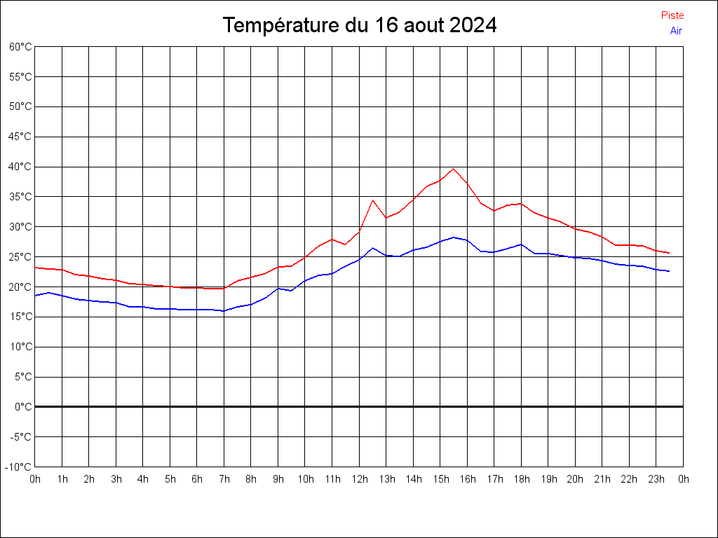Le 16/08/2024 à 16:20:56, il faisait 25.99°C dans l'air et 34.03°C au sol.