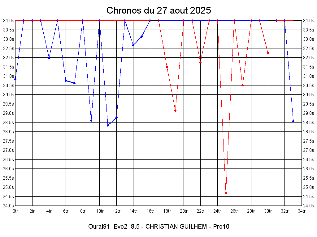 Oural91 Evo2 8,5 24.687 27/08/2025 18:06:02 CHRISTIAN GUILHEM Pro10 34 / 9.52km / 0h20m03.164