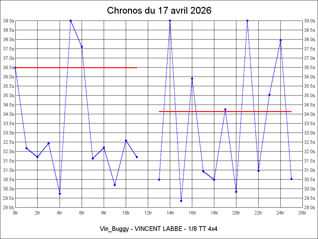 Meilleur tour - 29.346 17-04-2026 16:30:30 28.75°C 34.77°C 0.28km 34.35km/h